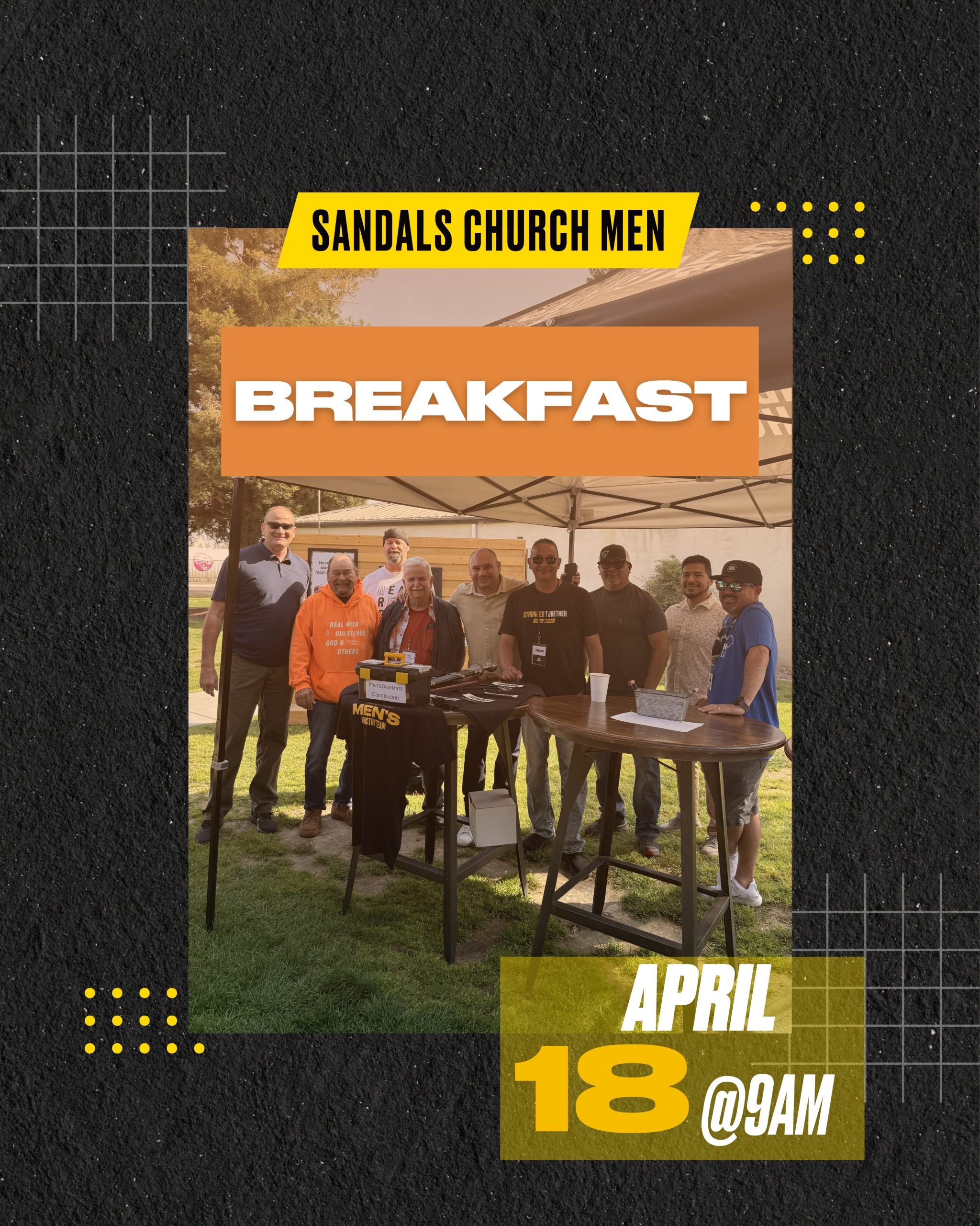 Sandals Church Men, Come to campus Saturday morning, March 21st at 9 am for some good food, great fellowship, and a powerful message from the Word of God! You won't want to miss it!