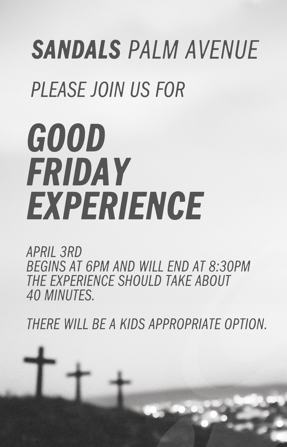 Join us for a Good Friday worship experience on April 3rd at 6:30pm.